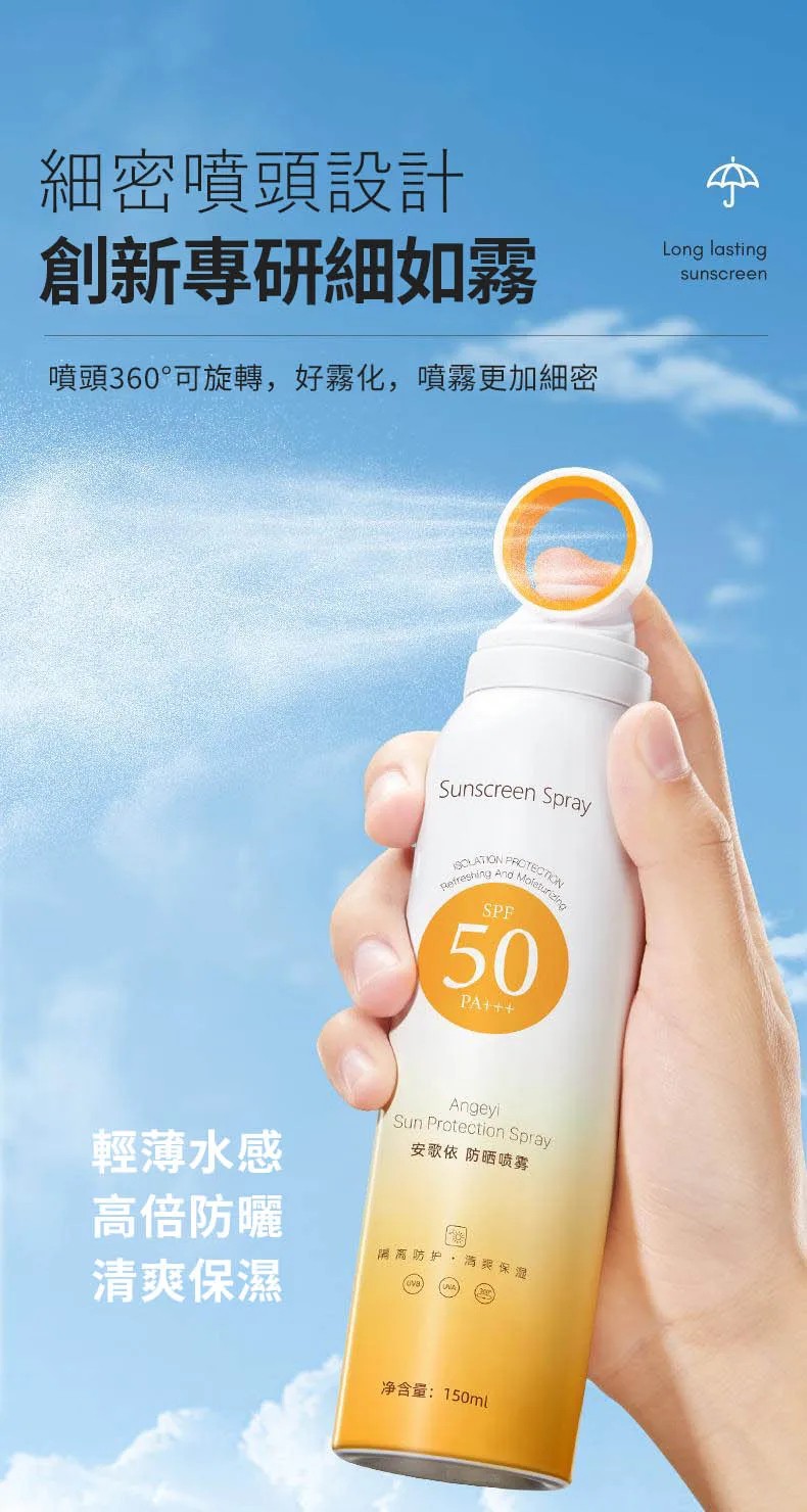 半小時前安歌依光圈防曬噴霧,細密噴頭設計 噴頭360°可旋轉自然膚惑,隔離防曬一瓶搞定 - 特大優惠「安歌依光圈防曬噴霧」4入96%用戶的選擇!NT$1198【限時免運】