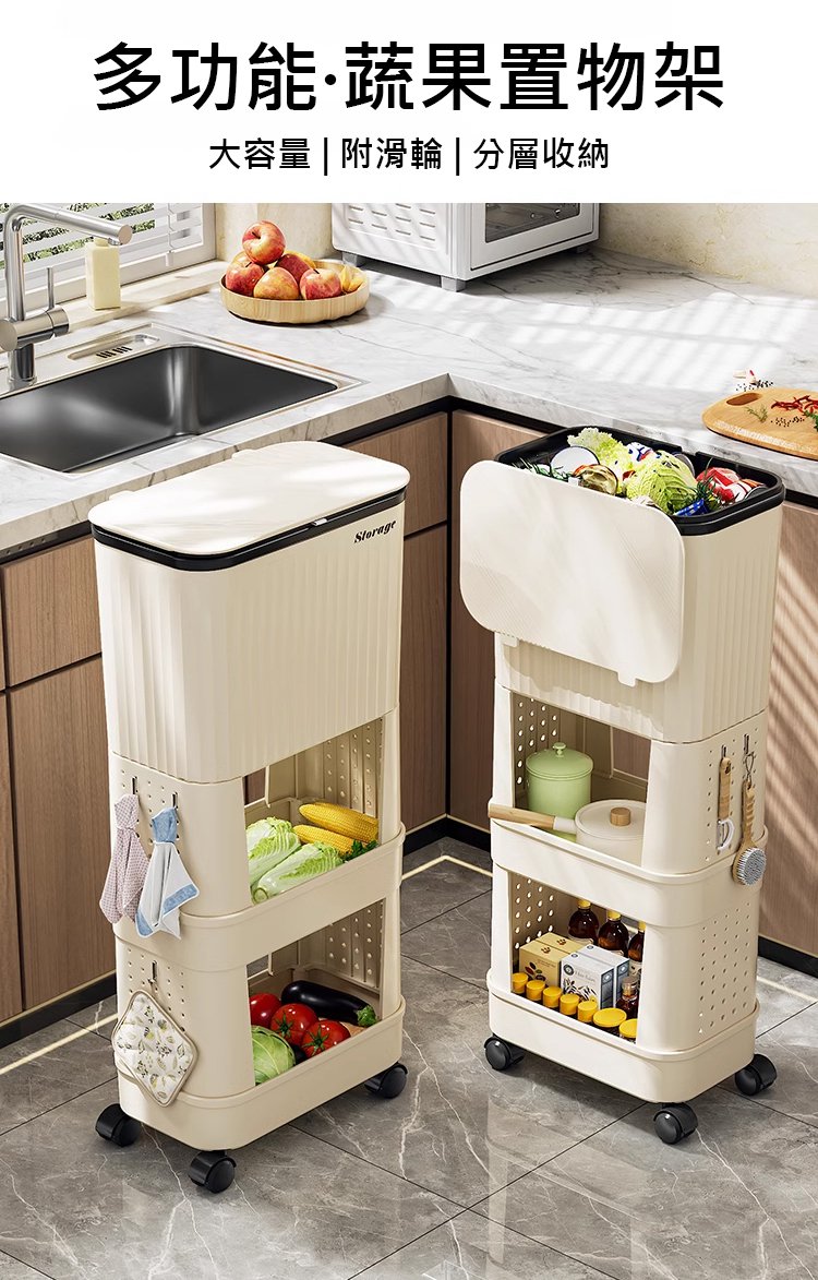 12分鐘前【不彎腰】家用可移動多功能置物垃圾桶 - 【超殺*贈20垃圾袋】1入組$279